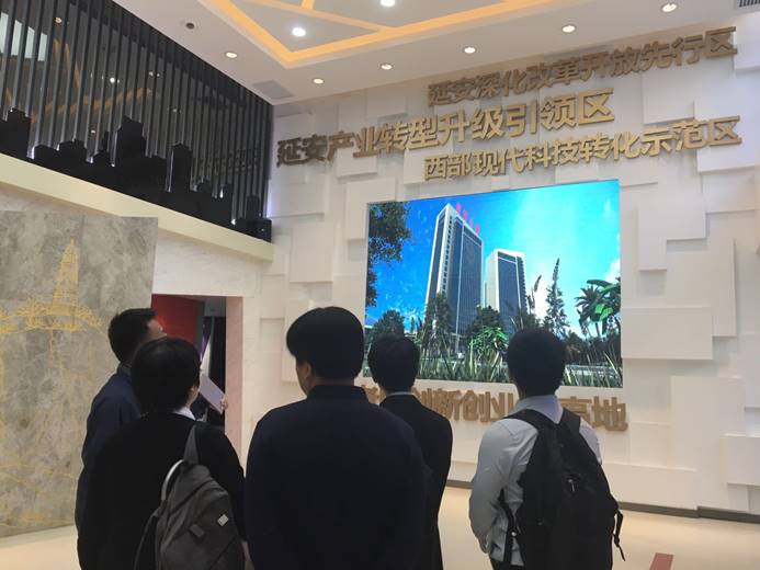次日,项目组来到了延安市高新技术产业开发区——姚店产业开发区,这里是延安三区九园的园区发展规划中建设得最为完善的园区之一。园区规划局、办公室等科室主任参与了会谈,各位领导就园区的规划、部门的规划、对新机场的期待进行交流,思想碰撞,为临空经济区联动新旧产业开拓了思路。在会谈之后,园区办还安排项目组成员参观了高新园区的规划馆,一览产业园区的总体规划和当前经营情况,陕北的科技明天,在延安!