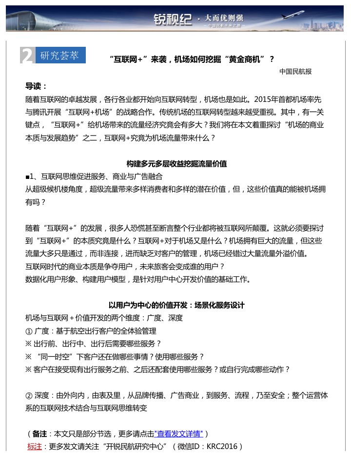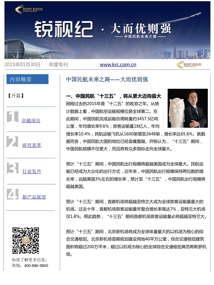 2016,对于中国民航业来说,是至关重要的一年,既是新局长上任之年,也是“十三五”规划开局之年,中国民航之路究竟要走向何方?且看开锐民航研究中心独家出品——《锐视记-大而优则强,中国民航未来之路》。